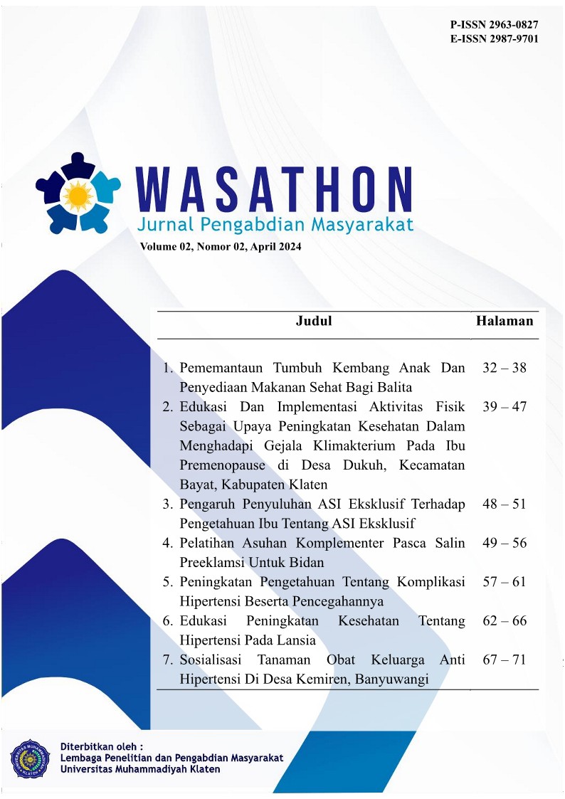 Posyandu units are generally organized at the Rukun Warga or Hamlet level, according to the conditions of each area. Posyandu activities are carried out once a month in collaboration with the local Community Health Center to monitor the growth and development of toddlers and provide nutritious food for toddlers. Community service at Posyandu Margo Kencono VII, Kersan Hamlet, Sidorejo Village, is focused on socializing the use of Posyandu to monitor children's growth and development, prevent malnutrition and obstacles to children's growth and development. This community service also provides information about healthy, nutritionally balanced food for toddlers. , providing healthy food by mothers easily and cheaply using various ingredients that are available and easily obtained in the local community. Implementation of community service is carried out in a humane manner, by sitting together and discussing with mothers while waiting for their turn to weigh toddlers, record weight, height, arm circumference and head circumference, with material delivered on the use of Posyandu to monitor children's growth and development and provide food which is nutritious and mothers of toddlers are very enthusiastic about the posyandu activities.